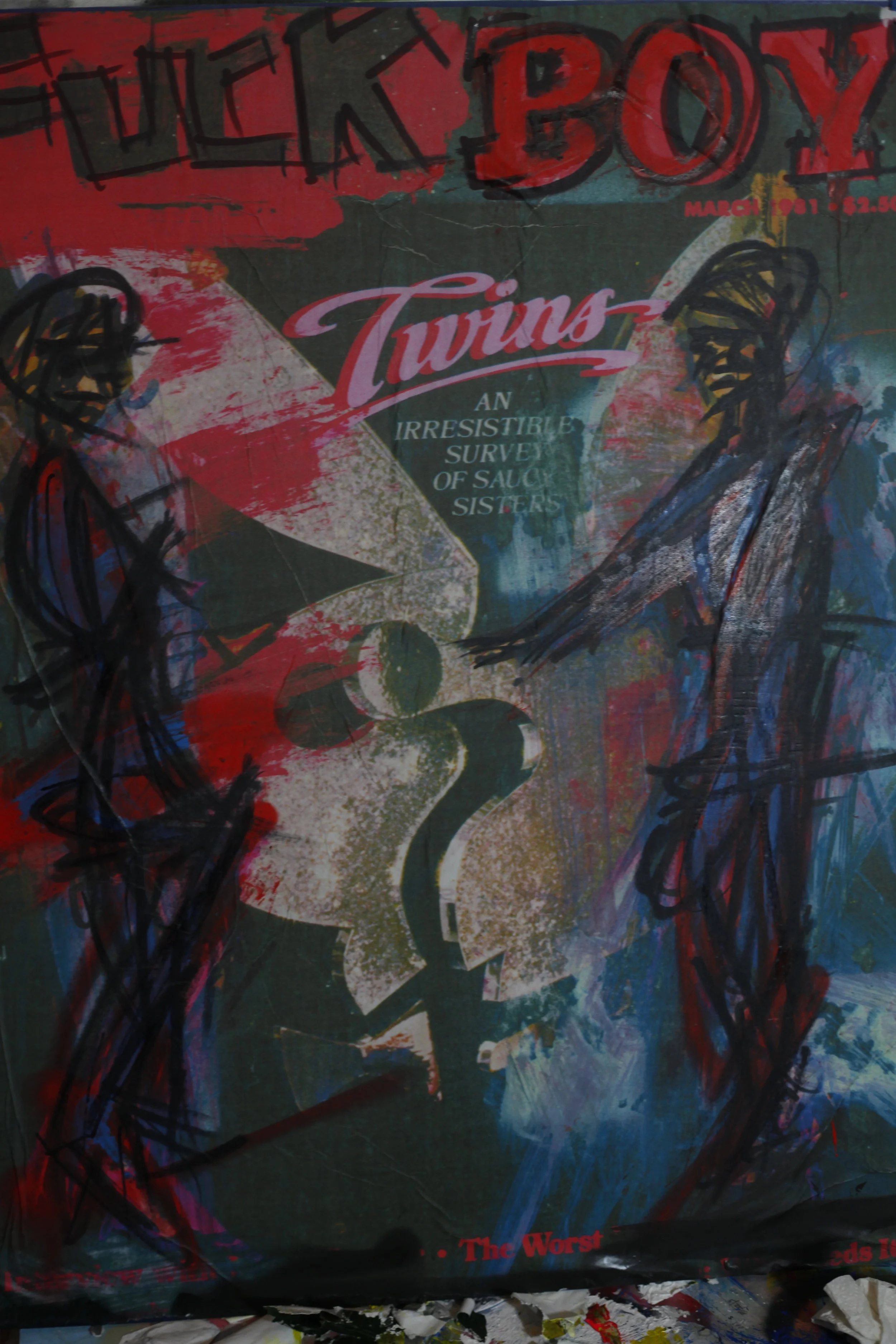 Incorporating mixed media and video, LUST FUCK BOY re-appropriates images culled from vintage Playboy magazines and other texts, examining the violence of mainstream sexual imagery and how the white imagination cultivates a fantasy of destruction of the female body.