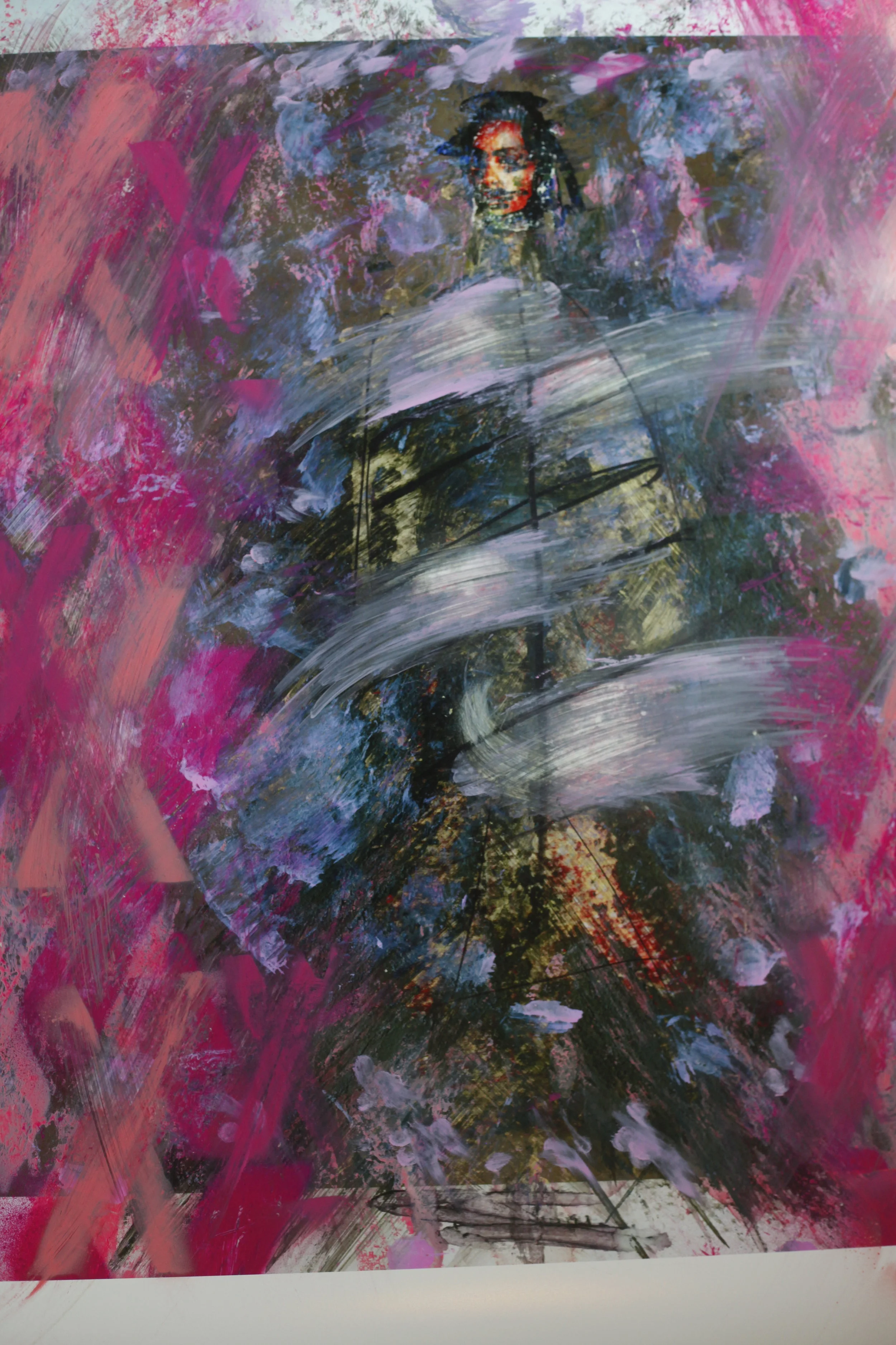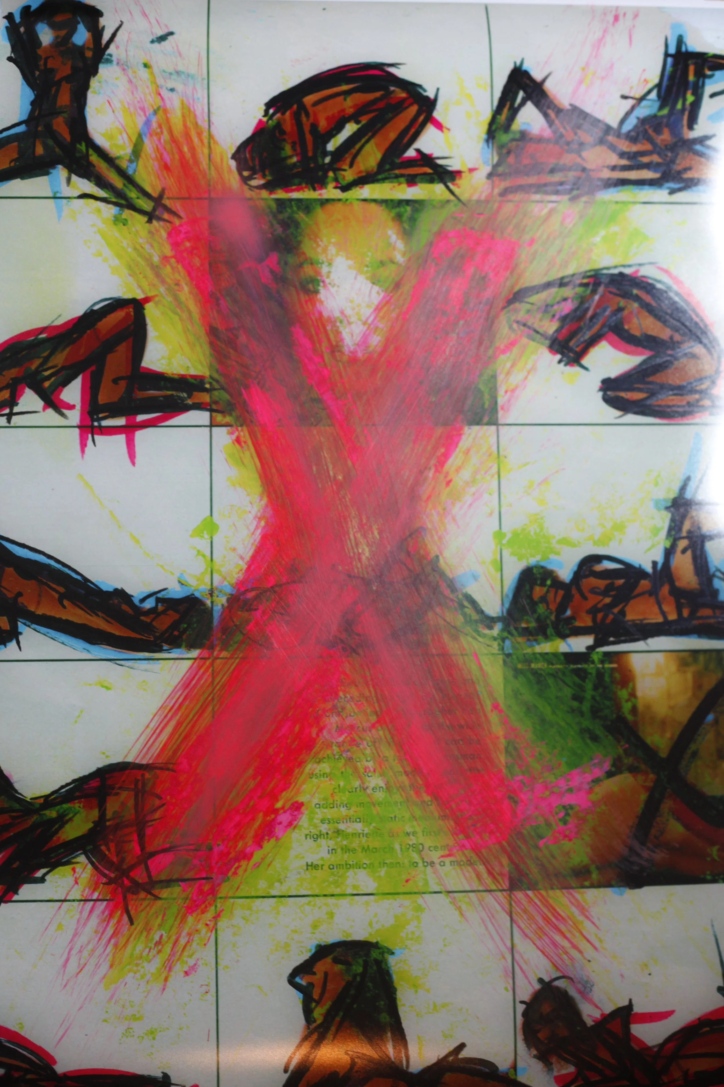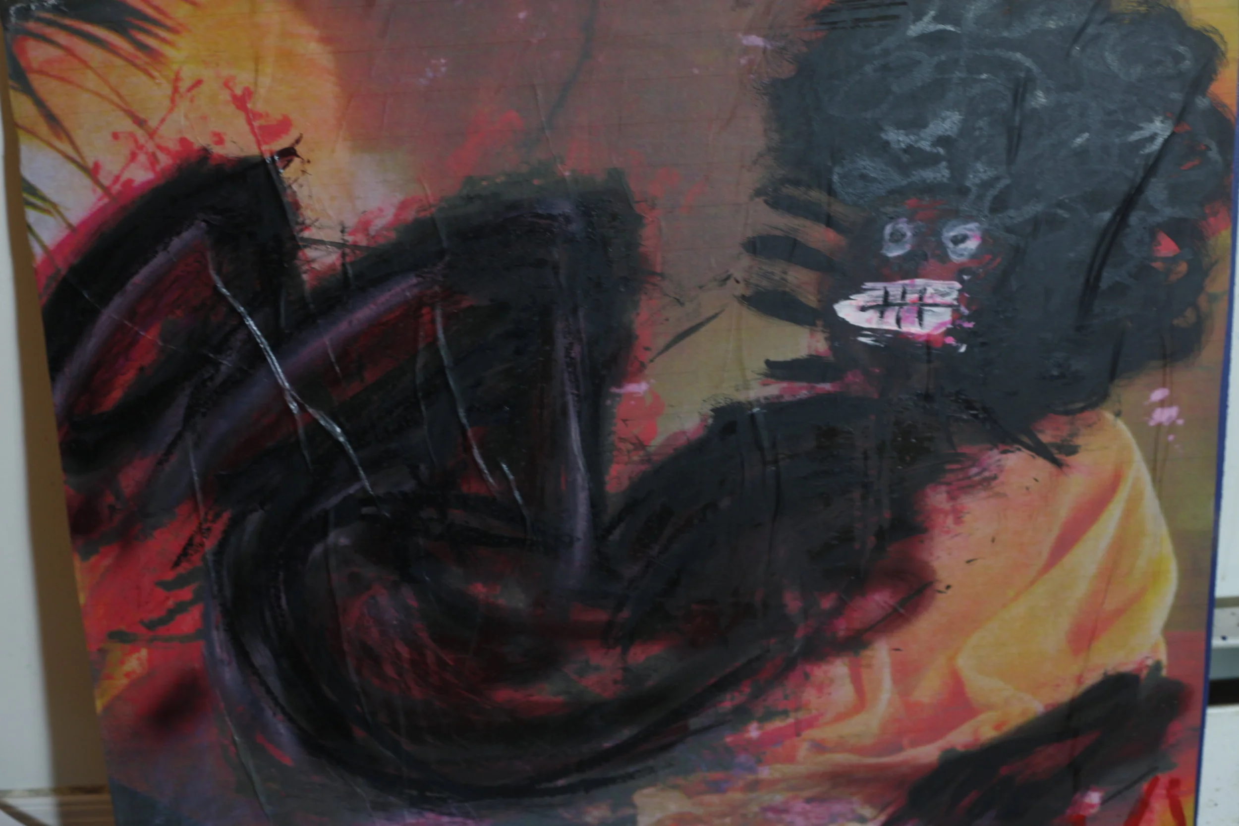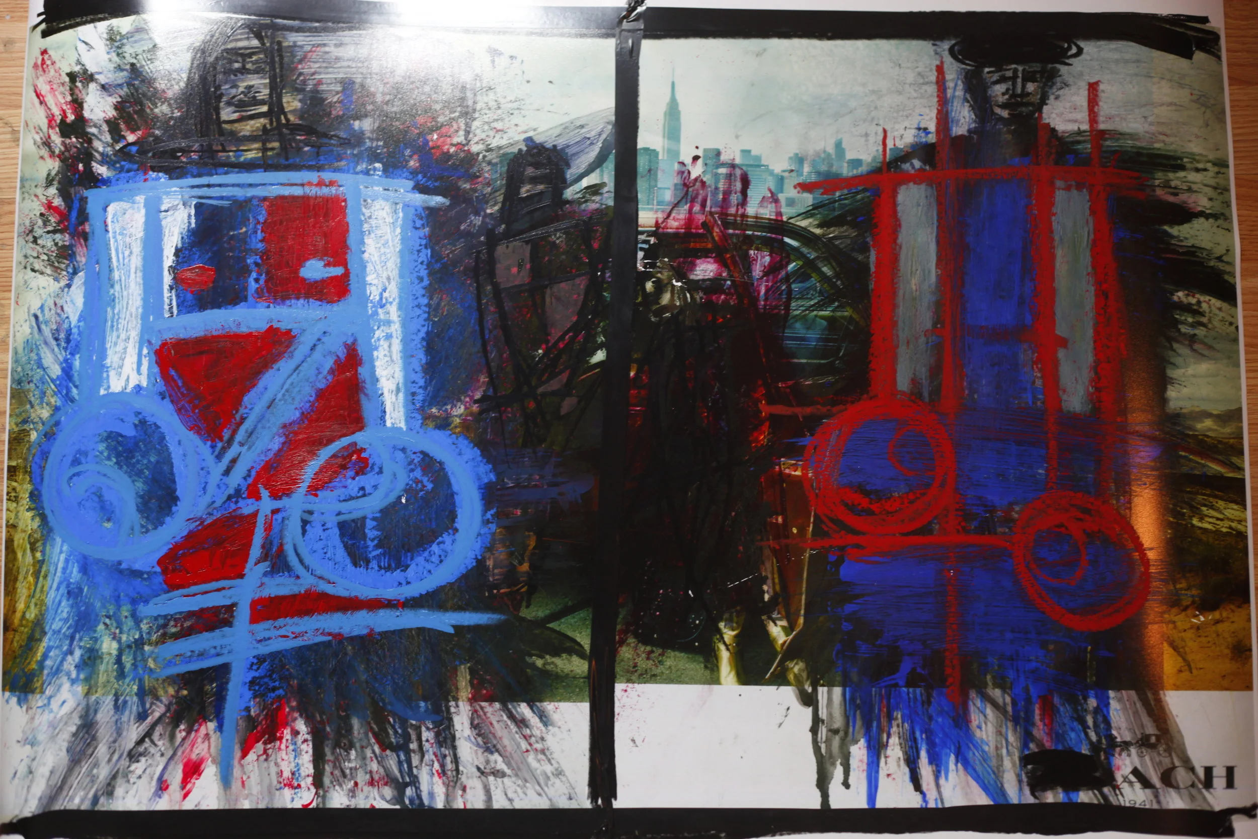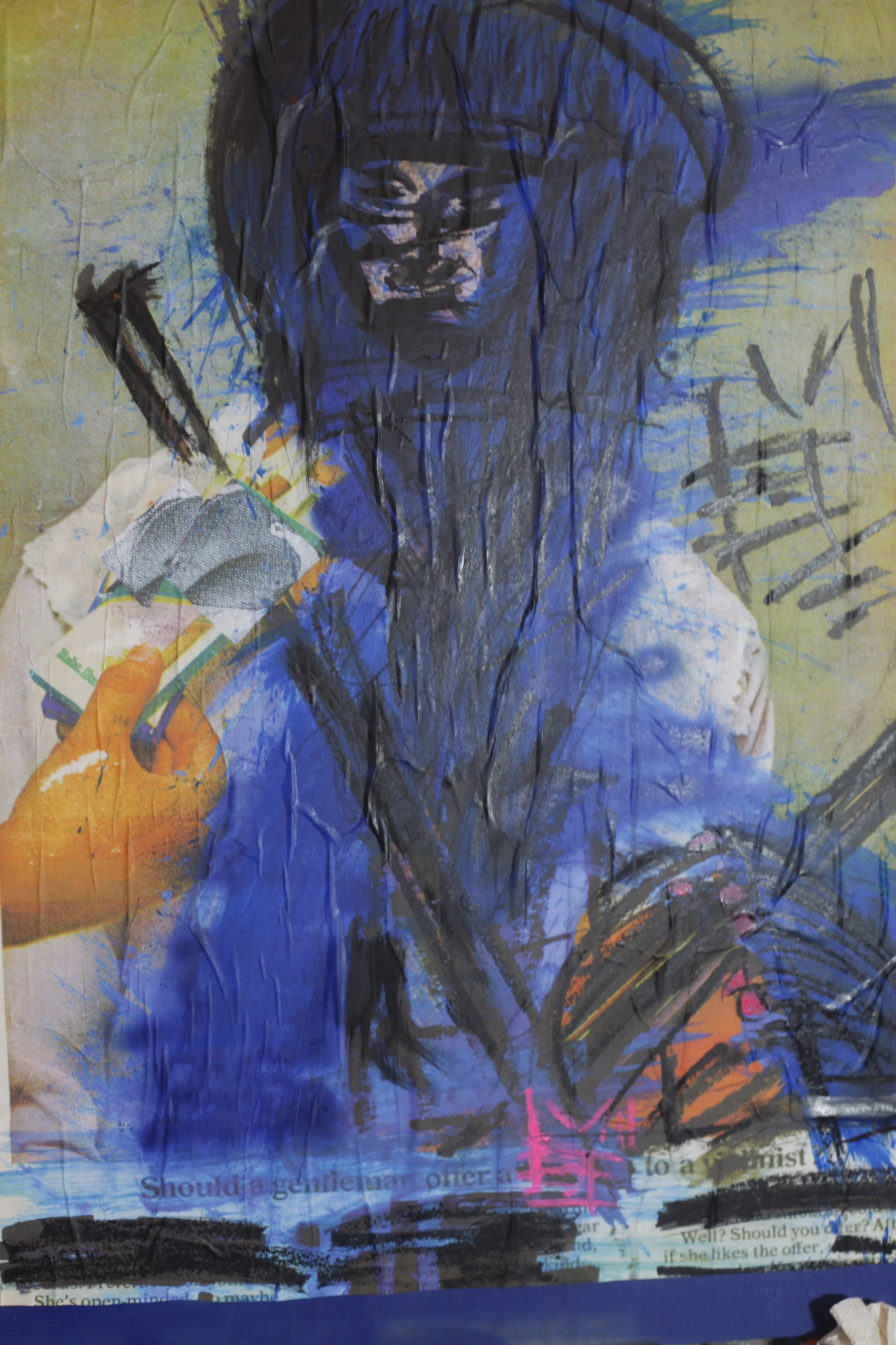 Mr B's work is rooted in fashion photography and pin-up art — existing images which he scans, prints out, tear apart, and draws or paints atop in order to create a larger conversation around misogyny, media representation and the male gaze.